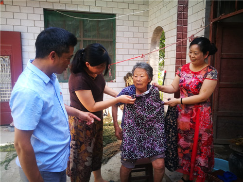 7月29日上午,周口市太康縣五里口鄉(xiāng)桂李行政村82歲老人石鳳蘭格外高興:該縣工商局翟保紅等3名駐村女扶貧干部相約來(lái)到她家里看望,并為她買來(lái)新衣服等?!皼]想到老了老了,又多了3個(gè)好閨女,這日子真是越過(guò)越好啊!”石鳳蘭老人高興地說(shuō)。