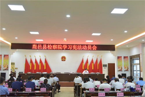 為了弘揚憲法精神,切實履行憲法定位,達到學習憲法、理解憲法、維護憲法、運用憲法的目的,7月30日,鹿邑縣檢察院召開學習憲法動員會。縣紀委監(jiān)委駐檢察院紀檢監(jiān)察組長、黨組成員王首功對憲法的序言和憲法修改的背景進行了細致的解讀。院黨組書記、檢察長魯建軍在主席臺下認真聽、認真記,作為一名普通干警一起認真聆聽了憲法解讀。
