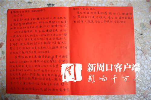 “我一定會(huì)銘記黨和政府的關(guān)懷,永遠(yuǎn)忘不了縣婦幼保健院的幫助,時(shí)刻懷著一顆感恩的心,努力學(xué)習(xí),回報(bào)社會(huì),把這份愛心傳遞下去……”王浩激動(dòng)地說。為了表達(dá)感謝,王浩將一封感謝信遞交給了亢國良手中。