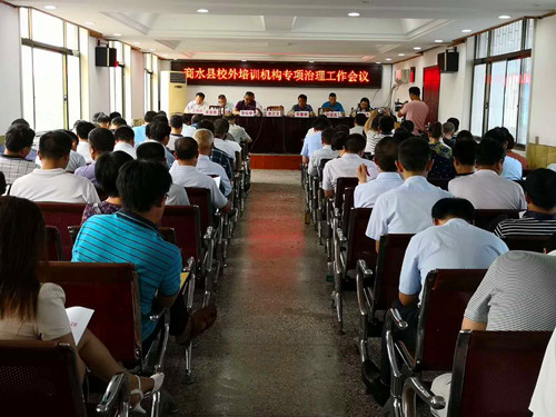 會(huì)上宣讀了《商水縣校外培訓(xùn)機(jī)構(gòu)專項(xiàng)治理方案》?!斗桨浮芬?guī)定此次校外培訓(xùn)機(jī)構(gòu)專項(xiàng)治理工作任務(wù)重點(diǎn)解決七個(gè)方面的問題:一是對(duì)消防、食品、場所等存在重大安全隱患的校外培訓(xùn)機(jī)構(gòu)要立即停辦;二是對(duì)不具備辦學(xué)資格和條件的,停止辦學(xué)行為;三是糾正“超綱教學(xué)”、“提前教學(xué)”、“強(qiáng)化應(yīng)試”等不良行為;四是查處將培訓(xùn)結(jié)果與學(xué)校招生掛鉤的宣傳行為;五是依法從嚴(yán)治教,嚴(yán)厲查處不遵守教學(xué)計(jì)劃、“非零起點(diǎn)教學(xué)”等行為;六是建立校外培訓(xùn)機(jī)構(gòu)黑、白名單制度;七是建立治理校外培訓(xùn)機(jī)構(gòu)的長效機(jī)制。校外培訓(xùn)機(jī)構(gòu)專項(xiàng)治理工作為期10個(gè)月,分三個(gè)階段進(jìn)行。