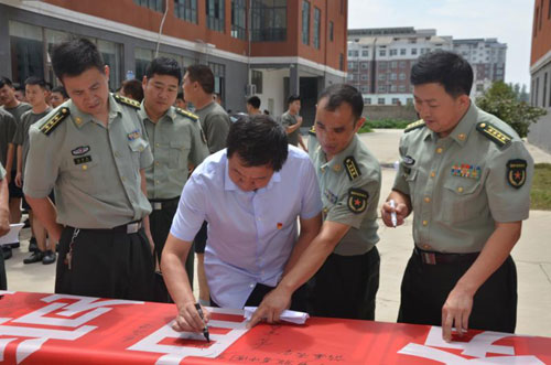 會上,預(yù)定新兵代表和教練員代表分別作表態(tài)發(fā)言。與會人員參加了川匯區(qū)人民政府預(yù)定新兵役前教育訓(xùn)練集中簽名儀式。