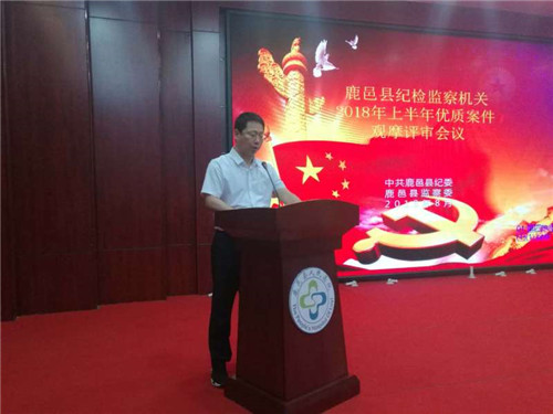 8月21日下午,鹿邑縣委常委、紀(jì)委書記、監(jiān)察委主任韓林出席縣紀(jì)委監(jiān)察委機(jī)關(guān)2018年上半年優(yōu)質(zhì)案件觀摩評(píng)審會(huì)議并講話。縣紀(jì)委監(jiān)察委機(jī)關(guān)全體人員、派駐紀(jì)檢監(jiān)察組、巡察辦和全縣各鄉(xiāng)鎮(zhèn)紀(jì)檢書記參加了會(huì)議。