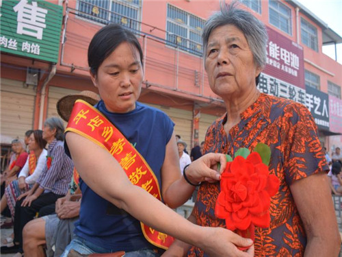 據(jù)平店鄉(xiāng)黨委書記陳靜介紹,近年來(lái),該鄉(xiāng)始終把孝善文化建設(shè)擺在突出位置,堅(jiān)持以扶貧與扶智、扶貧與扶德相結(jié)合,持續(xù)開展了“好媳婦、好婆婆、好兒子、脫貧光榮戶”評(píng)選等一系列豐富多彩的精神文明創(chuàng)建活動(dòng),積極倡樹社會(huì)正氣,大力弘揚(yáng)時(shí)代新風(fēng),推進(jìn)了良好的家風(fēng)、民風(fēng)、鄉(xiāng)風(fēng)持續(xù)向前發(fā)展。為持續(xù)做好全鄉(xiāng)脫貧攻堅(jiān)各項(xiàng)工作,全鄉(xiāng)28個(gè)行政村、87個(gè)自然村共集中排查出來(lái)268戶、363人獨(dú)居老人戶,95%以上屬于破舊危房。通過(guò)宣傳發(fā)動(dòng),現(xiàn)在已經(jīng)接回家300多人,對(duì)破舊危房全部進(jìn)行了拆除或封堵。今天受到表彰授牌的28個(gè)家庭是在“孝善敬老、讓愛回家”活動(dòng)中涌現(xiàn)出來(lái)的“孝善敬老”的模范和標(biāo)兵。