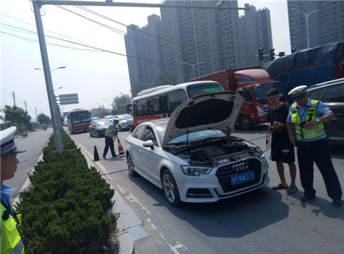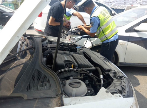 8月26日中午11點(diǎn),周口港區(qū)公安分局民警發(fā)現(xiàn),一輛私家車行經(jīng)周項(xiàng)路周口港區(qū)路段時(shí),發(fā)生故障停在快車道,影響道路暢通。港區(qū)交警部門負(fù)責(zé)人姜亞偉上前了解情況,得知汽車電瓶出現(xiàn)故障,無法正常發(fā)動。于是姜亞偉將警車開到私家車旁,用汽車電瓶連接線將警車電池與私家車鏈接,幫助車主啟動汽車,迅速恢復(fù)道路交通秩序。