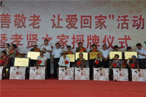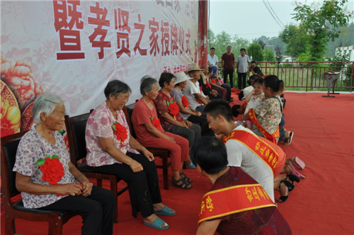 大會開始之前,來自該鄉(xiāng)20個行政村的廣場舞代表隊、戲曲代表隊、嗩吶代表隊先后出場,訾秀玲一曲《黃土高坡》贏得全場觀眾雷鳴般掌聲。緊接著,好兒子、好媳婦代表上臺為自己的父母磕了3個響頭,以表達對父母養(yǎng)育之恩的感激之情,老人們臉上流露出激動和幸福的淚水,現(xiàn)場掌聲經(jīng)久不息??h領(lǐng)導(dǎo)在主席臺上為36個孝賢之家授牌,并向獲獎?wù)弑硎咀YR。據(jù)介紹,該鄉(xiāng)自開展孝善敬老接老人回家活動以來,已有200多名獨居老人被兒子、媳婦接回家居住。為了表彰接老人回家的好兒子、好媳婦和孝賢之家,該鄉(xiāng)組織、策劃了這次大型活動。