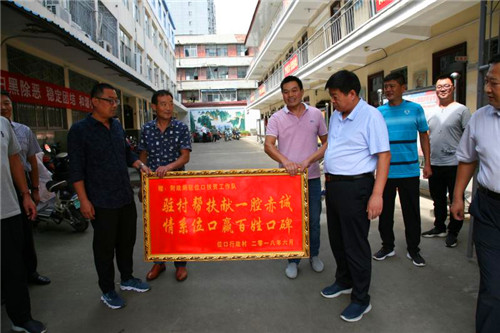 丁喜三代表財(cái)政局黨組對(duì)位口村民為財(cái)政局駐村工作隊(duì)贈(zèng)送錦旗和牌匾表示感謝。稱縣財(cái)政局在縣委縣政府正確領(lǐng)導(dǎo)下,對(duì)張店鎮(zhèn)位口行政村進(jìn)行駐村幫扶,三年來的駐村工作取得了很大的成績,也存在很多不足,希望位口村廣大群眾對(duì)財(cái)政局的駐村扶貧工作多提寶貴意見,同時(shí)對(duì)新駐村隊(duì)員提出高的要求,財(cái)政局和位口村干部群眾攜手共同把脫貧攻堅(jiān)工作做好,確保不拖全縣的后腿,在奔小康的路上不落下一人。