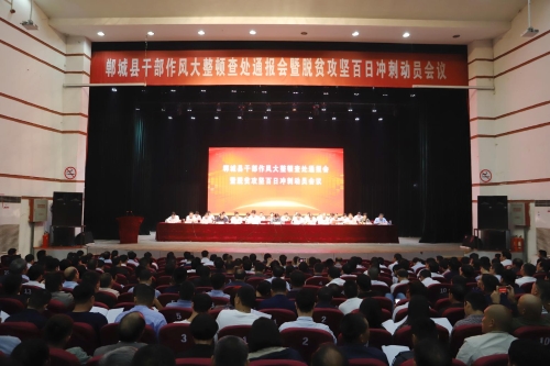 10月7日上午,鄲城縣干部作風(fēng)大整頓第四次查處通報大會暨脫貧攻堅“百日沖刺”動員會召開。會議貫徹落實全省脫貧攻堅電視電話會議和脫貧退出培訓(xùn)會議精神,聚焦脫貧摘帽目標(biāo)任務(wù)和作風(fēng)問題,分析當(dāng)前形勢,進一步動員全縣上下統(tǒng)一思想、提振精神,強化責(zé)任、盡銳出戰(zhàn),向脫貧摘帽發(fā)起總攻。縣委書記羅文閣出席會議并講話,縣長李全林主持會議??h領(lǐng)導(dǎo)崔衛(wèi)國、李建軍、姜永來、侯磊、吳青鋒、王智華、呂振龍、馬超、胡友濤、崔衛(wèi)華、劉輝等參加會議。