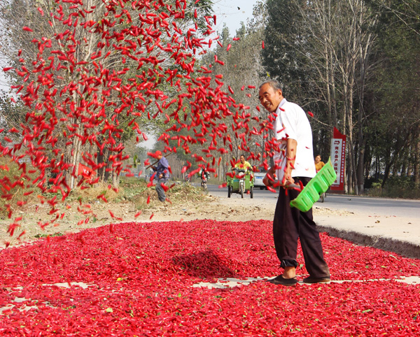 近年來(lái),商水縣郝崗鎮(zhèn)大力實(shí)施辣椒產(chǎn)業(yè)扶貧,通過(guò)黨員干部帶動(dòng)、結(jié)對(duì)貧困戶扶持發(fā)展,種植萬(wàn)畝以上小辣椒,實(shí)現(xiàn)畝效益3000元以上,促進(jìn)了群眾增收致富。圖為昨日上午,該鎮(zhèn)西洄行政村農(nóng)民正在晾曬小辣椒。
