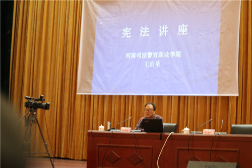 會(huì)上,省司法警官職業(yè)學(xué)院法律系主任王治荃、法學(xué)碩士孫啟河兩位教授分別從憲法的時(shí)代背景、基本內(nèi)涵、精神實(shí)質(zhì)和重要意義及依法行政的基本含義、本質(zhì)和全面推進(jìn)依法行政的奮斗目標(biāo)等做了精彩輔導(dǎo)。