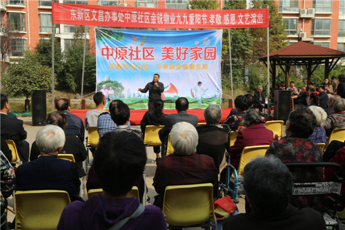 金秋十月,菊花飄香。10月17日重陽(yáng)節(jié)當(dāng)天,東新區(qū)中原社區(qū)攜同金銳物業(yè)在該社區(qū)組織開展了“擁抱新時(shí)代 歡度重陽(yáng)節(jié)”文藝演出活動(dòng)。東新區(qū)社會(huì)事務(wù)局局長(zhǎng)朱放哲,房屋征收中心主任閆國(guó)政,文昌辦事處主任李向峰,國(guó)庫(kù)支付中心副主任科員齊孟磊,文昌中學(xué)副校長(zhǎng)康瑞玲參加活動(dòng)。
