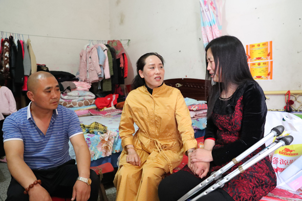 王英是太康縣轉(zhuǎn)樓鄉(xiāng)人,前些年突患股骨頭壞死病,雖花去醫(yī)療費(fèi)幾十萬(wàn)元,但病情并未治愈,從此靠拄雙拐走路,生活陷入困境。前年,在太康縣婦聯(lián)組織的一次獻(xiàn)愛(ài)心活動(dòng)中,薛華杰了解到王英的情況后,積極捐款捐物,主動(dòng)把她作為幫扶對(duì)象。平時(shí)薛華杰只要有時(shí)間就去探望,給她送些生活用品,與她嘮嘮家常。“薛大姐以前與俺無(wú)親無(wú)故,待俺如同親人,常年如一日地對(duì)俺提供無(wú)私幫助,讓我感受到社會(huì)帶來(lái)的溫暖?!蓖跤⒈硎荆拔乙欢ㄒ獦淞?zhàn)勝病魔的信心,好好地生活,不辜負(fù)好心人厚愛(ài)。”
