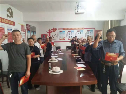 “我志愿加入中國共產(chǎn)黨,擁護(hù)黨的綱領(lǐng),遵守黨的章程,履行黨員義務(wù)……”在汲水鄉(xiāng)張嶺行政村室,汲水鄉(xiāng)黨委副書記王申帶領(lǐng)全體黨員面對黨旗,一起重溫入黨誓詞,并學(xué)習(xí)黨章黨規(guī)。