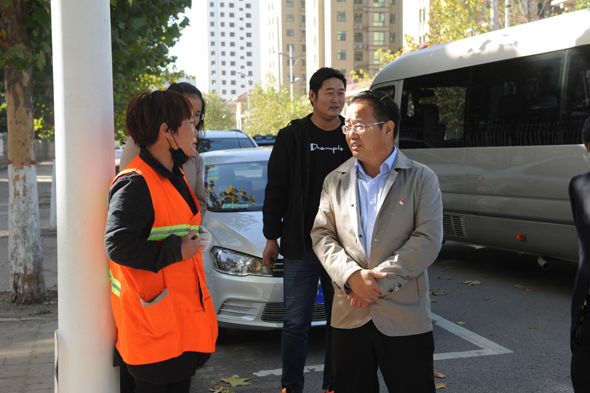 督導(dǎo)中,張建黨親切地與環(huán)衛(wèi)工人進(jìn)行交談,了解他們的工資收入狀況及是否買了人身保險(xiǎn)等情況,并勉勵他們一定要盡職盡責(zé),當(dāng)好城市的“美容師”。