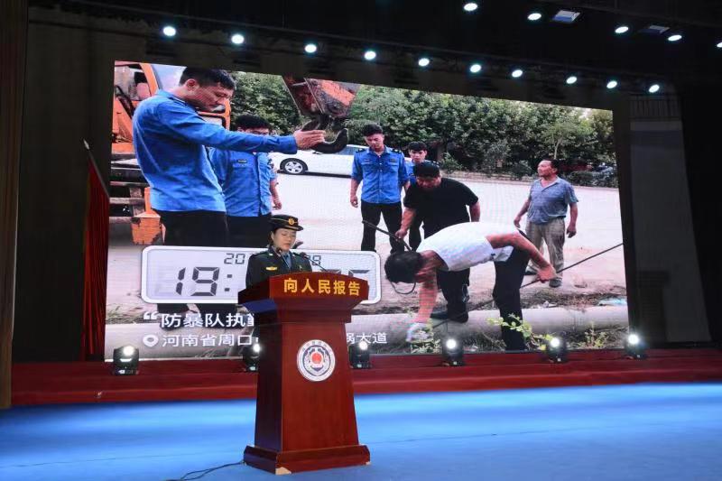在10月26日的表彰大會上,除了表彰200多名環(huán)衛(wèi)工師傅外,還表彰了城管和環(huán)衛(wèi)工作先進單位。宣讀名單的西華縣委常委陳秉生直接講道:由于時間關(guān)系,先進單位的名單就不一一宣讀了,但是200多名環(huán)衛(wèi)工師傅的名單我要逐一宣讀出來。緊接著,他清了清嗓子,把每一名環(huán)衛(wèi)工人的名字都大聲讀了出來,每一位觀眾都聽得清清楚楚。