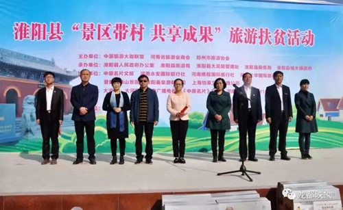 金秋時(shí)節(jié),天藍(lán)水碧。11月3日上午,“景區(qū)帶村,共享發(fā)展”旅游扶貧走進(jìn)淮陽(yáng)活動(dòng),在國(guó)家級(jí)旅游扶貧開(kāi)發(fā)村、河南省鄉(xiāng)村旅游特色村一一該縣城關(guān)鎮(zhèn)從莊行政村隆重舉行。來(lái)自河南各地市25個(gè)旅游團(tuán)隊(duì)1400余名游客參加了此次活動(dòng),河南廣播電視臺(tái)《中原名片》欄目全程直播活動(dòng)情況,直播間觀眾互動(dòng)達(dá)55萬(wàn)多人次。開(kāi)幕式上,副縣長(zhǎng)張潔致辭,縣政府辦公室駐從莊村第一書(shū)記推介從莊行政村鄉(xiāng)村旅游情況,縣旅游局與河南永安國(guó)際旅行社、河南攜程國(guó)際旅行社簽訂戰(zhàn)略合作協(xié)議。河南大華國(guó)際旅行社、河南攜程國(guó)際旅行社、上海恰豪文化傳播有限公司、中原旅游大咖聯(lián)盟等企業(yè)為從莊行政村及貧困戶捐贈(zèng)油、米、棉被等慰問(wèn)品及現(xiàn)金2萬(wàn)元??h電商服務(wù)平臺(tái)、從莊村民展銷(xiāo)布老虎、泥泥狗、土雞蛋、兔子肉、干野菜等農(nóng)副手工產(chǎn)品40余樣?;顒?dòng)結(jié)束后,全體游客赴龍湖國(guó)家濕地公園、太昊陵景區(qū)觀光游覽。