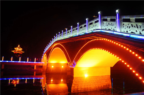 統(tǒng)計數(shù)據(jù)顯示,貫穿城區(qū)“五河”的濱水景觀廊道目前已達45公里,環(huán)繞互通的水系雨污分流,清波蕩漾,千年古城活力再現(xiàn);沿岸廣場、游園、玉欄、花木、亭、廊、親水平臺,玲瓏別致,相映成趣,形成了無數(shù)個多元空間,為市民提供了休閑健身空間和漫步快跑的理想場所;城區(qū)的50多座街心主題文化園,依勢而修,與沿河的美化、綠化、亮化融為一體,每天傍晚,清波蕩漾,虹橋飛架,臥波噴泉伴隨著悠揚的音樂翩翩歡舞,“五河”上下,燈火璀璨,絢麗多彩,如夢如幻?!熬藕永@真源,五湖潤鹿邑”的生態(tài)水系景觀讓行走其間的人恍若走進江南水鄉(xiāng),人在水上,水在畫中的美妙意境讓行走其間的人身心放松、回歸自然。