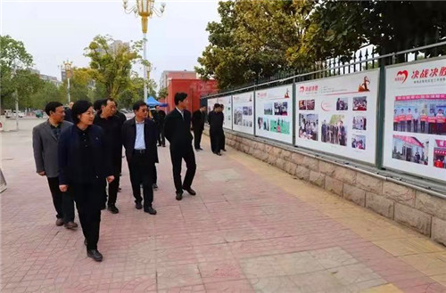 11月14日下午,鄲城縣委書(shū)記羅文閣等縣四個(gè)班子領(lǐng)導(dǎo)一行到縣世紀(jì)廣場(chǎng)共同觀看《決戰(zhàn)決勝---鄲城縣脫貧攻堅(jiān)工作攝影》展。
