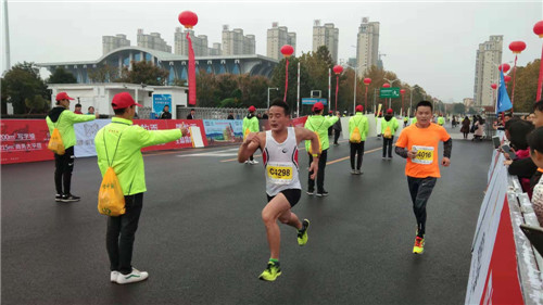 11月18日,在2018周口馬拉松暨善跑中國周口站現(xiàn)場,一個個身穿統(tǒng)一服裝的志愿者活躍在賽道之上,他們或給選手舉路線指示牌,或伸出大拇指給路過選手一個大大的“贊”,成為賽場內(nèi)外一道靚麗的風(fēng)景。