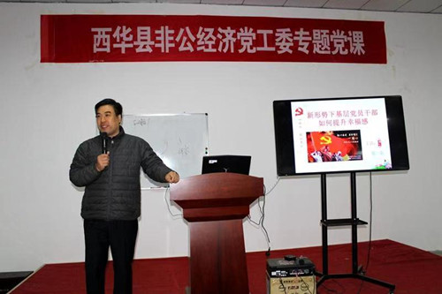 在分享環(huán)節(jié),黃橋鄉(xiāng)個私協(xié)分會黨支部書記、西華縣豫龍食品有限公司總經(jīng)理李會霞在談自己感受時說:“聽了徐老師的課,很受教育和鼓舞,我要牢記黨的宗旨,多做好事、善事,積極奉獻愛心,回饋社會?!焙幽厦超F(xiàn)代裝飾設計中心總經(jīng)理雷永勝真誠地說:“希望這樣的黨課,今后多搞幾次?!笨h非公黨工委書記、縣工商局局長李永民說:“徐老師今天的黨課,讓大家深受教育和鼓舞,也讓我們做非公黨建工作的人員,熱情更高,干勁更足了。”