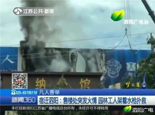 9月5日上午10時許,江蘇省泗陽縣北京東路塞納公館營銷中心因招牌頂部電焊火星濺落,致使門頭起火。起火點距離地面約5米,滅火器等常用滅火設(shè)備無法起作用。為防止意外,售樓處工作人員及時疏散群眾,同時撥打119救火電話。就在此時,身為泗陽縣園林綠化管理處的技術(shù)員曹書志,正開著灑水車進(jìn)行綠化帶澆水作業(yè),見到路邊濃煙滾滾,火勢兇猛,曹書志二話不說,立刻把灑水車開到著火點,不顧生命危險下車,和其他3名工人,迅速打開前噴水頭和后部水炮供水的副發(fā)動機(jī)進(jìn)行滅火,在持續(xù)噴射十余分鐘后成功將火撲滅。