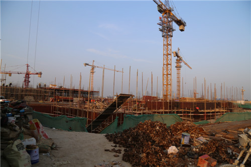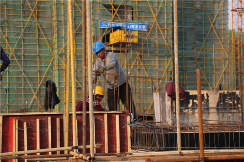 當日下午,記者在現(xiàn)場看到,施工人員正在緊張施工。樓上,工人們在嫻熟捆扎鋼筋;地面,叉車、挖掘機、灑水車等機械交叉進行作業(yè),施工現(xiàn)場一派熱火朝天的景象?!?1棟樓已有9棟出正負零,最高一棟已施工至第十層,其余幾棟樓房預計在12月底全部出正負零。”泰和家園項目安質部經(jīng)理李加林介紹,該項目總建筑面積32.7萬平方米,共建安置房2108套。其中9棟樓正在進行主體結構施工,其余幾棟樓正在進行梁板鋼筋綁扎和頂板支模,預計2019年4月底實現(xiàn)所有樓層全部封頂。