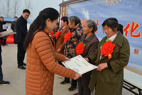 11月28日下午,商水縣袁老鄉(xiāng)連橋村在村室文化廣場(chǎng)舉行“道德模范”表彰大會(huì)。村民群眾代表、受表彰人員等300余人參加表彰大會(huì),鄉(xiāng)黨委書記杜志宏、商水縣稅務(wù)局黨委副書記、副局長(zhǎng)宗振亞出席會(huì)議。