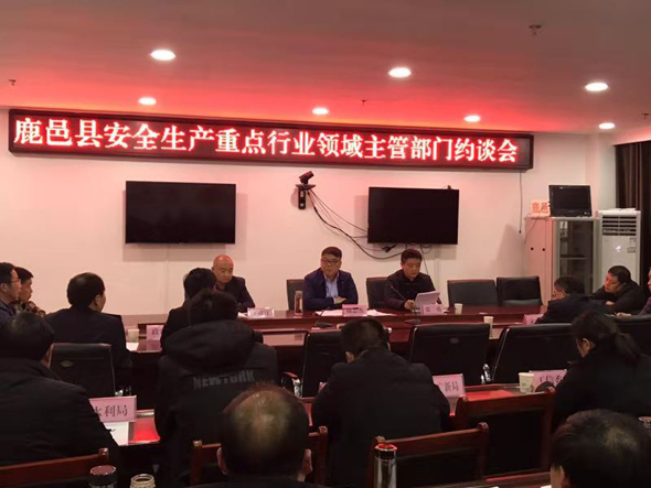 12月2日下午,在全國、全省視頻會議結束后,鹿邑縣委常委、常務副縣長陸志杰隨即召開專題會議,迅速貫徹落實全國、全省會議精神、安排部署全縣安全生產督導工作,并對安全生產重點行業(yè)領域主管部門約談,副縣長張勇主持會議。