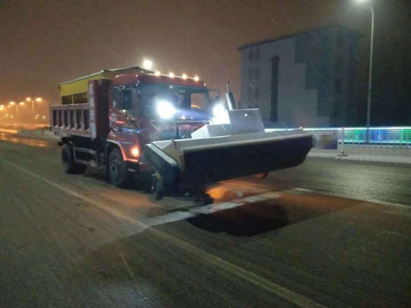 12月11日凌晨1時許,在周口市區(qū)大慶路橋上,嚴寒低溫下,一輛融雪環(huán)衛(wèi)作業(yè)車往返橋面拋撒融雪劑。據(jù)悉,為保障路面暢通和廣大市民安全出行,川匯區(qū)愛衛(wèi)辦的工作人員加班加點,趕赴各自責任區(qū)域,連夜對中心城區(qū)主要路段進行消除積冰積雪工作。他們先后對中州大道橋等市區(qū)幾座橋梁的上下坡道、橋面及文昌大道、七一路、交通大道、中州大道、八一大道、大慶路、建設大道等主要路段的背陰易結冰路面進行了拋撒融雪劑作業(yè),防止路面結冰。記者 彭慧 攝