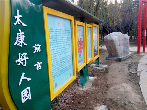 為把好人精神鐫刻在太康發(fā)展和進(jìn)步的進(jìn)程中,把太康建設(shè)成為好人之城、文明之城、和諧之城、美麗之城、幸福之城,從2018年9月起,太康“好人園”經(jīng)過緊鑼密鼓地籌建,如今開園迎賓。好人園緊扣“好人”主題,以道德風(fēng)尚建設(shè)為主線,在休閑公園的基礎(chǔ)上,秉承“因地制宜、因勢(shì)利導(dǎo)”的原則,堅(jiān)持寓教于園、寓教于景、寓教于樂,以小處著手、局部微調(diào)的手法,通過“好人步道”“好人亭”“好人樹”“好人大舞臺(tái)”“好人精神長(zhǎng)廊”五大版塊,將道德風(fēng)尚高地建設(shè)與公園的整體風(fēng)格和功能定位完美結(jié)合。好人園兼顧了公園本身特色與文化傳播需要,利用林蔭小道,以石、亭、牌等基礎(chǔ)設(shè)施為載體,圖文并茂地展示太康近年來獲得國(guó)家和省級(jí)表彰的道德典型、身邊榜樣的先進(jìn)事跡,一步一景,隨景賦形。市民在游園過程中,潛移默化地接受“真、善、美”的教育和熏陶,激發(fā)人們見賢思齊,榜樣的引領(lǐng)作用不斷放大。