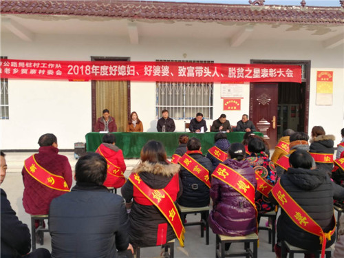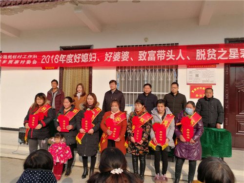 為大力培育和踐行社會主義核心價值觀,大力弘揚家庭美德,倡導家庭文明新風尚,充分發(fā)揮先進典型的示范引領(lǐng)作用,12月14日,市公路局駐村工作隊和商水縣袁老鄉(xiāng)賈寨村村委會聯(lián)合開展了“好婆婆”、“好媳婦”等先進典型評選表彰活動。市公路局黨委書記孫德棟、副局長許益民為受表彰人員頒發(fā)獎品和證書。