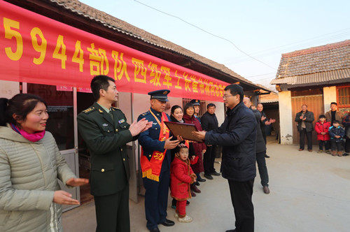 軍地聯(lián)手鑼鼓喧天送喜報(bào),功臣家人披紅戴花受尊崇??战当娔巢渴翘丶?jí)英雄黃繼光生前所在部隊(duì),今年以來(lái),先后有4名周口籍官兵在各類重大演訓(xùn)任務(wù)中立功受獎(jiǎng),為了使軍人的榮譽(yù)向官兵家庭拓展、向全社會(huì)輻射,該部決定開(kāi)展“功耀門楣送喜報(bào)進(jìn)家門”活動(dòng),利用12月14日、15日兩天時(shí)間,選派專人成立“報(bào)喜”小分隊(duì),為我市4名官兵家庭送去立功喜報(bào)和慰問(wèn)金。