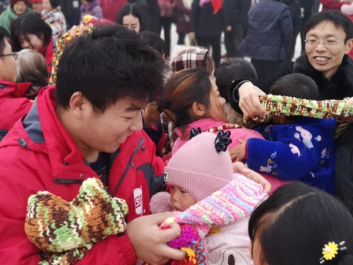 在觀看了一段歡快的舞蹈表演后,與會領(lǐng)導(dǎo)為獲獎家庭頒獎,并和志愿者們一起為孩子們戴上了圍巾,現(xiàn)場數(shù)百名群眾報以陣陣熱烈掌聲。