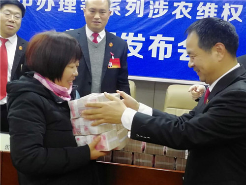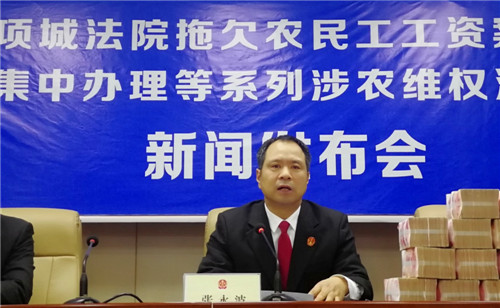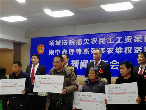 “感謝項(xiàng)城法院的領(lǐng)導(dǎo),他們一心為民,克服種種困難,幫助我們要回了血汗錢?!?2月24日,項(xiàng)城法院拖欠農(nóng)民工工資案件集中辦理等系列涉農(nóng)維權(quán)活動(dòng)新聞發(fā)布會(huì)在該院召開,16名涉農(nóng)維權(quán)案件當(dāng)事人從項(xiàng)城法院黨組成員、院長張永波的手中接過索要許久的血汗錢,喜極而泣。