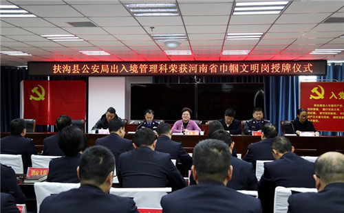 扶溝:張穎波向榮獲河南省“巾幗文明崗”的縣公安局出入境管理科授牌