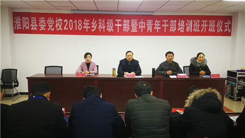 12月28日上午,淮陽縣委黨校鄉(xiāng)科級干部暨中青年干部培訓(xùn)班開班儀式在黨校培訓(xùn)樓舉行。縣委常委、組織部長耿黨恩出席并講話,縣委黨校黨委書記、常務(wù)副校長范德良主持開班儀式。54名鄉(xiāng)科級干部和41名中青年干部共95名學(xué)員參加開班儀式。