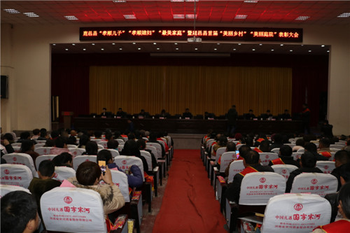 12月29日,鹿邑縣“孝順兒子”“孝順媳婦”“最美家庭”暨首屆“美麗鄉(xiāng)村”“最美庭院”表彰大會(huì)在縣委學(xué)校一樓報(bào)告廳召開。縣領(lǐng)導(dǎo)付吉廣、武衛(wèi)東、劉銀、宋克言等出席會(huì)議??h委宣傳部、文明辦、縣總工會(huì)、縣婦聯(lián)、縣委農(nóng)辦、縣扶貧辦等部門負(fù)責(zé)人與來自全縣各鄉(xiāng)鎮(zhèn)辦事處的300多名干部群眾代表參加會(huì)議。