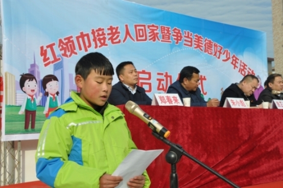 12月29日下午,在商水縣姚集鎮(zhèn)舉行的“紅領(lǐng)巾接老人回家暨爭(zhēng)當(dāng)美德好少年”活動(dòng) 啟動(dòng)儀式上,姚集鎮(zhèn)盧廟小學(xué)六年級(jí)學(xué)生張吉慶用幼稚童音朗誦的《用愛(ài)接爺爺奶奶 回家》,感動(dòng)了在場(chǎng)的來(lái)自各鄉(xiāng)鎮(zhèn)的數(shù)百名鄉(xiāng)村干部?!昂⒆又v的好,我們一定配合 鄉(xiāng)政府把獨(dú)居老人戶清零工作做好做實(shí),讓老人們年年過(guò)暖冬?!睖f鄉(xiāng)中心校長(zhǎng)戚 二中會(huì)后告訴記者。