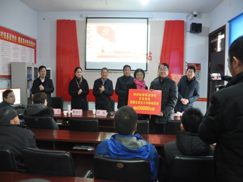 作為河南省人民檢察院的直屬學(xué)校,河南檢察職業(yè)學(xué)院也積極參與瓦房莊的脫貧攻堅工作。在當(dāng)日舉行的河南檢察職業(yè)學(xué)院文化扶貧啟動儀式上,他們不僅送來了精彩的黨課,還為該村小學(xué)捐贈現(xiàn)金5萬元,用于村小學(xué)操場硬化,改善辦學(xué)條件。