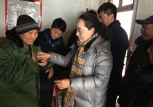每到一處,代表們都為老人們帶去大米、食用油,方便面、棉衣、棉被、棉鞋等慰問品和真誠的問候。五保老人岳作貴現(xiàn)年63歲,患有強(qiáng)直性脊柱炎,常年臥床,生活不能自理,由弟弟岳中崗照顧其生活起居。當(dāng)薛華杰、趙晨光等人大代表將大米、食用油,方便面等送到岳作貴家,并為岳作貴換上新棉大衣時(shí),岳作貴熱淚盈眶地說:"感謝你們大冷天來看望我!感謝共產(chǎn)黨,感謝人大代表……"