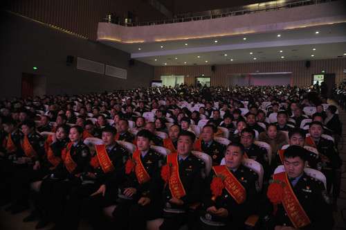 熠熠金盾耀新春,崢嶸歲月訴衷腸。1月24日晚,鹿邑縣文化中心大會堂里座無虛席,鹿邑縣公安部門在這里隆重舉行“2018忠誠記憶”職業(yè)榮譽頒獎儀式。縣領導李剛、李國際、雷申、侯自峰、陳巍、何新敏、齊梅英等和公安民警、警屬代表等共千余觀眾在現場共同見證。