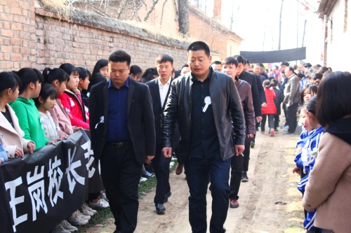 院內正廳上方,懸掛著黑底白字的橫幅“沉痛悼念王崗同志”,院外道路兩側,擺滿了人們敬獻的黑紗、花圈。市教體局領導來了,縣政府副縣長肖煒來了,縣教體局局長劉現營來了;局黨組成員、各鄉(xiāng)校校長來了,王崗最愛的學生、同事來了;學生家長也來了……大家胸佩白花,向這位愛崗敬業(yè)的基層校長表示崇高的敬意和深切的哀悼。