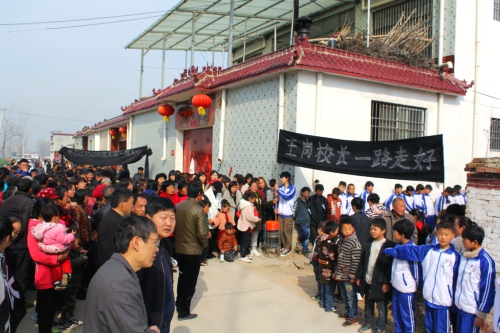 “教育師魂鑄就止步盛年悲矣,杏壇大愛揮灑平民風范偉哉!”3月24日上午,鄲城縣東風鄉(xiāng)鄭莊行政村大王莊一個普通的農家院內外,挽幛輕垂,哀樂低回。數千名師生、群眾自發(fā)前來送別年僅37歲的該村小學校長王崗。