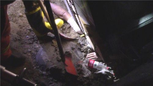 指揮員在與司機(jī)溝通時(shí)發(fā)現(xiàn),由于車(chē)身很重,司機(jī)手臂很快出現(xiàn)血液流通不暢、知覺(jué)微弱現(xiàn)象,如不及時(shí)脫困,后果十分嚴(yán)重。情況緊急,救援人員先利用剪擴(kuò)器對(duì)駕駛室與被困人員手臂處進(jìn)行擴(kuò)張,但由于車(chē)身較重,地面所墊硬物無(wú)法承受壓力,擴(kuò)張器無(wú)法發(fā)揮作用。隨后,救援人員利用鐵鍬在被困人員手臂下進(jìn)行挖土,5分鐘后,隨著空間的逐漸擴(kuò)大,被困人員手臂被小心翼翼抽回,司機(jī)成功脫困,消防指戰(zhàn)員從駕駛證另一側(cè)把他救出。