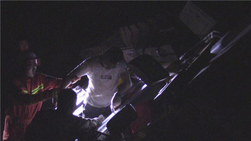 4月18日3時(shí)許,商水縣陽(yáng)城大道與S213交叉口東1公里處,一輛工程車(chē)在施工過(guò)程中側(cè)翻,造成工程車(chē)司機(jī)被困。消防指戰(zhàn)員利用剪擴(kuò)器、鐵鍬等破拆工具,成功將被困人員救出。