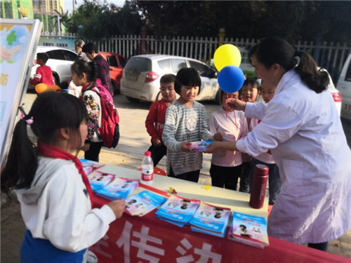 活動(dòng)現(xiàn)場(chǎng),工作人員向來(lái)往的行人、接送孩子的家長(zhǎng),發(fā)放了創(chuàng)建國(guó)家衛(wèi)生城市致廣大市民的一封信,宣傳預(yù)防接種、瘧疾的同時(shí),倡導(dǎo)創(chuàng)衛(wèi)工作從我做起。