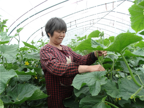 4月24日,沈丘縣周營鎮(zhèn)趙莊村生態(tài)蔬菜大棚基地里,綠油油的吊蔓黃瓜長勢喜人,少量已采摘上市。忙碌著的菜農(nóng)王翠霞告訴記者:“俺今年種了20畝地的大棚黃瓜,從種子肥料,到用水用藥,都有講究,要按標(biāo)準(zhǔn)化生產(chǎn),這樣種出來的黃瓜品質(zhì)好,客商搶著要。一畝地大棚瓜果蔬菜的年收入超過1.5萬元?!?/p>