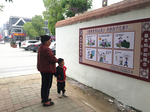 “文化墻既美化了環(huán)境,又能給我們老年人提供一些養(yǎng)生的建議,領(lǐng)導(dǎo)的想法好嘞很著呢!”家住馨麗康城63歲的趙姓居民在文化墻前由衷地發(fā)出了感慨,“大街上的宣傳標(biāo)語,商店電子屏上的標(biāo)語,街道上不停地清掃灑水,學(xué)校給學(xué)生發(fā)的宣傳手冊,現(xiàn)在,大人小孩都知道創(chuàng)建衛(wèi)生城市了,環(huán)保意識也增強(qiáng)了,我的小孫子吃完的果凍盒,不見垃圾桶就一直拿在手里舍不得扔了。”