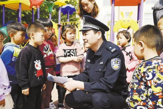 5月10日,扶溝縣公安局汴崗派出所民警走進轄區(qū)幼兒園,向小朋友介紹地震逃生技巧、火災預防措施和火災報警常識等,提高了小朋友應急自救互救能力。 記者 謝永靜 通訊員 李龍喜 攝