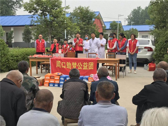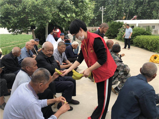 當(dāng)天上午,周口助夢公益團(tuán)20余名志愿者來到西華縣大王莊鄉(xiāng)中心敬老院,為37名老人帶來了自發(fā)捐款購買的鞋子、毛巾、襪子、香皂、臉盆、香蕉、西瓜等價(jià)值近2000元的愛心物資。