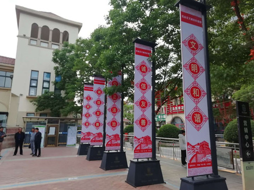 記者了解到,該社區(qū)圍繞自身特點(diǎn),結(jié)合社會熱點(diǎn),以社會主義核心價值觀為載體,貫徹落實(shí)“以文化城”的城市發(fā)展理念,以“愛在鄰里”為主題,結(jié)合中華民族優(yōu)秀傳統(tǒng)文化,涵蓋紅色黨建、文明禮儀、家風(fēng)家訓(xùn)、衛(wèi)生健康教育、環(huán)保知識、安全生產(chǎn)、社區(qū)工作等方面知識內(nèi)容,大力宣傳“家和、鄰睦、綠色、共建、共治、共享”的社區(qū)發(fā)展理念和“健康、衛(wèi)生、文明”的生活理念。一幅幅圖文并茂的宣傳板,一句句引人深思的文明標(biāo)語,都透露出濃濃的文化氣息。該活動既傳播了文明禮儀、傳統(tǒng)文化、科學(xué)常識、鄰里和諧、衛(wèi)生保健等方面知識,使居民在耳濡目染中受到教育,又傳達(dá)了社區(qū)支部、居委會的職能和相關(guān)業(yè)務(wù),讓居民們更加了解社區(qū)工作內(nèi)容,為建設(shè)和諧文明社區(qū)增添了一個嶄新的交流窗口。